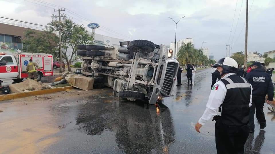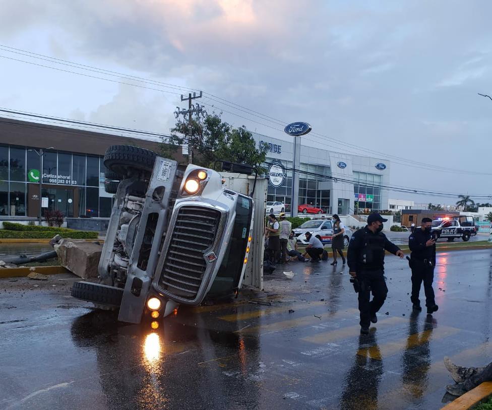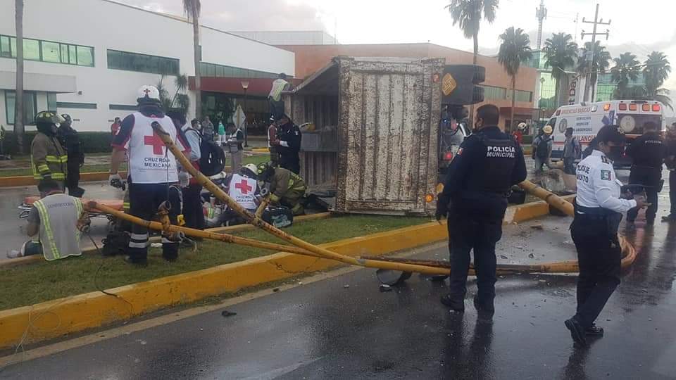 Cancún, Q. Roo, Jueves 31 de Diciembre de 2020, poderycrítica.- Al menos 15 lesionados dejó un accidente de tránsito donde se vio involucrado un camión de volteo al volcarse tras impactar con un semáforo en la ciudad de Cancún.