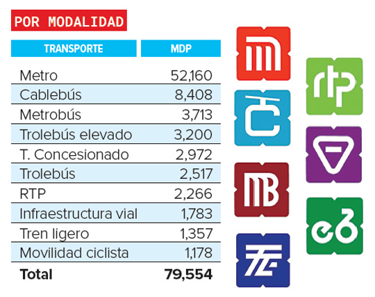 En el caso del metrobús, dijo que se han ampliado 3 líneas, lo que equivale a 35 kilómetros, y se están cambiando los equipos de esa misma por 60 que serán eléctricos.