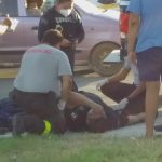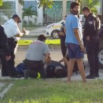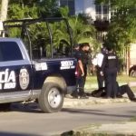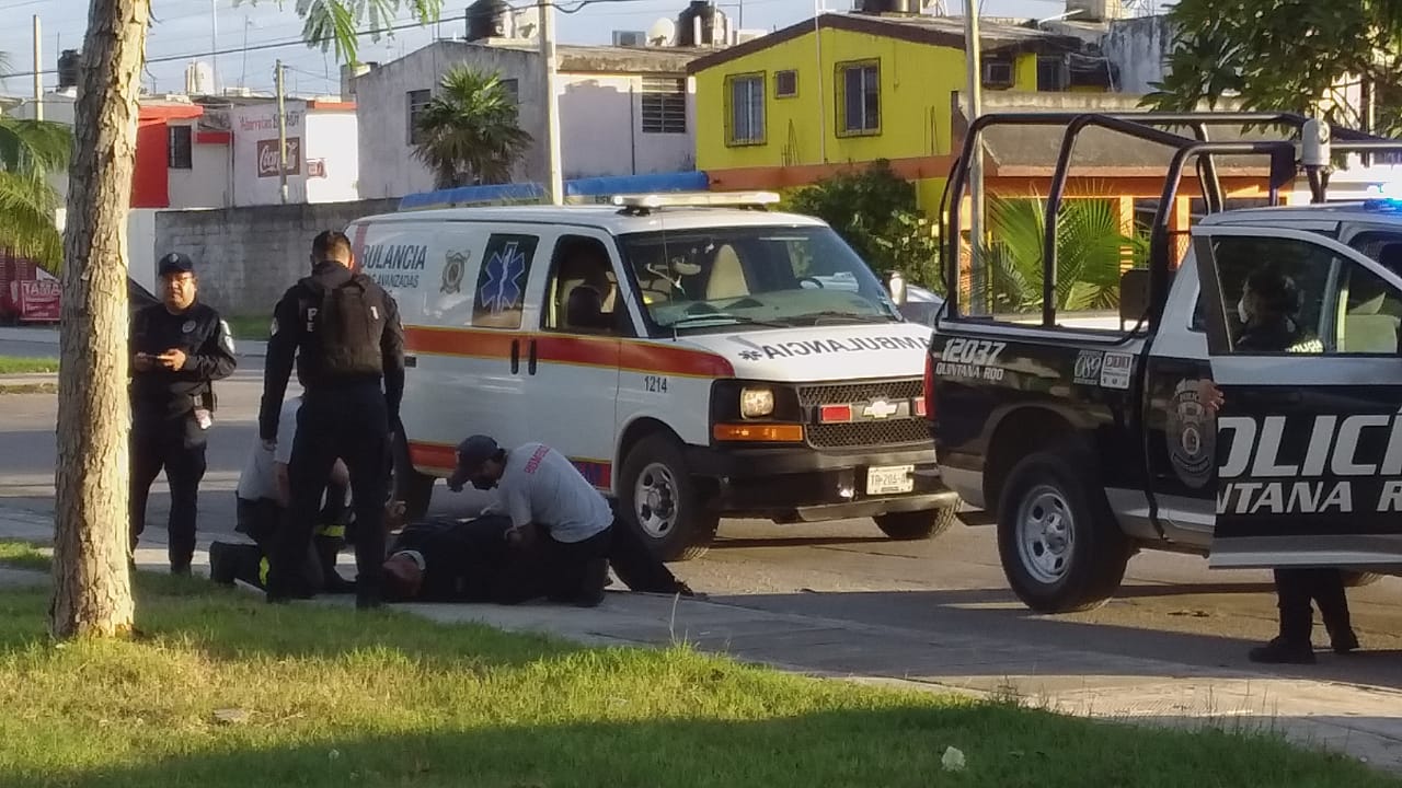 Sin embargo, fueron alcanzados por elementos de la Policía Quintana Roo y cuando los elementos procedían a asegurarlos, el chofer de la unidad aceleró arrolló a uno de ellos y dejándolo tirado en el pavimento.