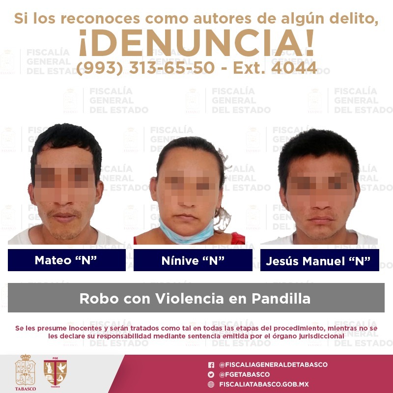 PODER Y CRÍTICA | Villahermosa, Tabasco.- Conforme los protocolos de ley, y respetando la presunción de inocencia, la Fiscalía General del Estado (FGE) de Tabasco, cumplimentó una orden de aprehensión en contra de tres personas, quienes habrían participado en un evento de robo con violencia cometido en el interior de una unidad de transporte público en Cunduacán.