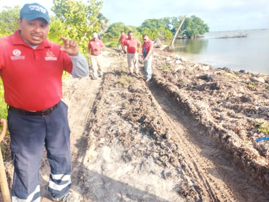 Felipe Carrillo Puerto, Q. Roo, Martes 06 de Octubre de 2020, poderycrítica.-Apenas la mañana de este martes una brigada de Protección Civil acudió para atender un tramo del camino a la comunidad pesquera de Punta Herrero, que quedó en mal estado debido al paso de la tormenta tropical «Gamma» y ahora se pronostica el posible impacto de huracán «Delta».