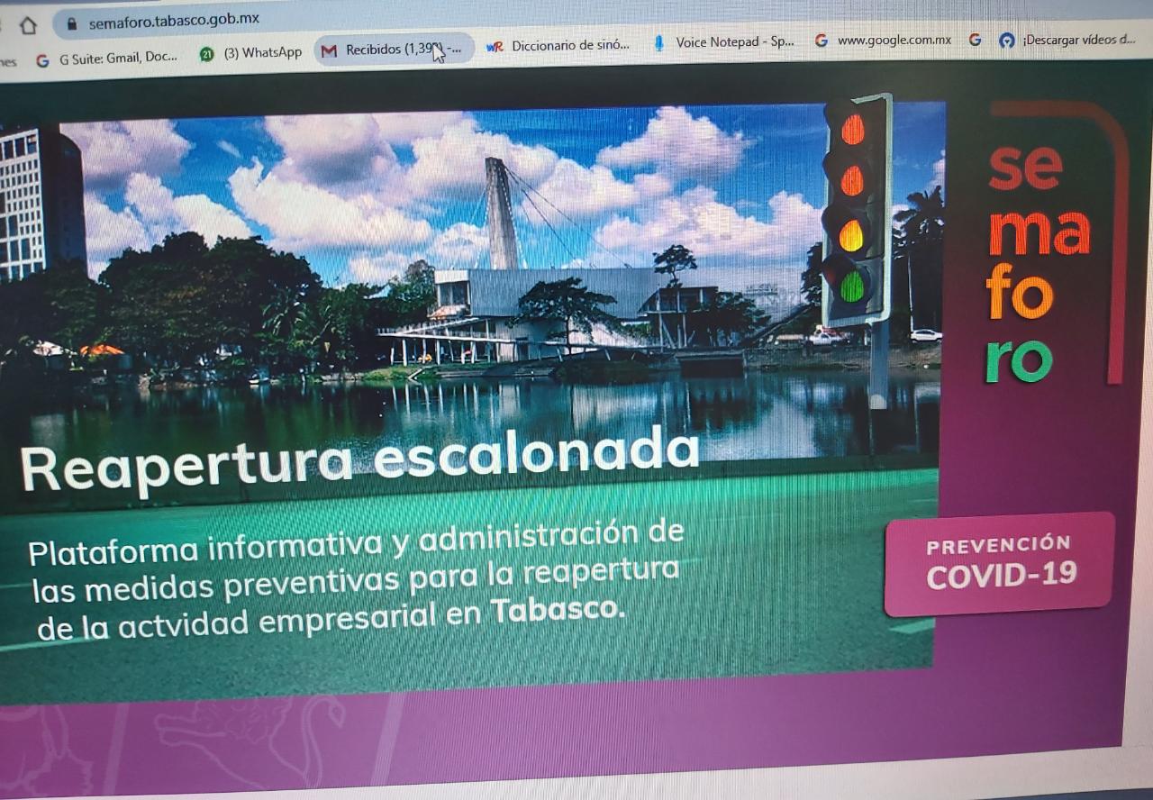 Tabasco, 17 junio; poderycritica.-Luego de la publicación del Plan para la Reactivación Económica de Tabasco en el Periódico Oficial, la titular de la Secretaría para el Desarrollo Económico y la Competitividad (Sedec), Mayra Elena Jacobo Priego, informó que la herramienta tecnológica semaforo.tabasco.gob.mx fue puesta a disposición para que el sector empresarial conozca los protocolos y demás medidas que deberá implementar a partir del próximo lunes 22 de junio.