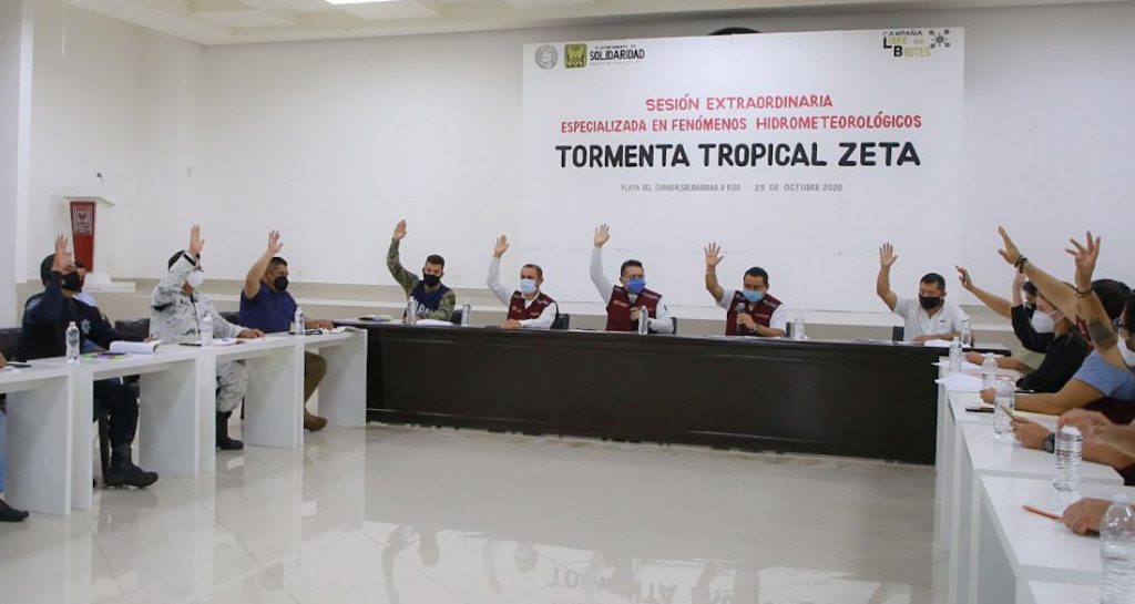 Playa del Carmen, Q. Roo, Lunes 26 de Octubre de 2020, poderycrítica.- Llevó a cabo Ayuntamiento de Solidaridad Sesión Extraordinaria del Comité Especializado en Fenómenos Hidrometeorológicos, en seguimiento a la tormenta tropical “Zeta”, con el anuncio de la apertura de los primeros seis refugios temporales, en Playa del Carmen y Puerto Aventuras, para atender a los ciudadanos que eventualmente pudiesen ser evacuados de zonas vulnerables.