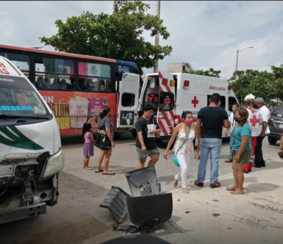 Cancún, Quintana Roo, jueves 26 de agosto del 2021, poderycritica.- Un accidente de tránsito entre una van del transporte público y un vehículo particular marca Toyota, tipo Avanza, se registró esta mañana con saldo de 10 personas lesionadas.