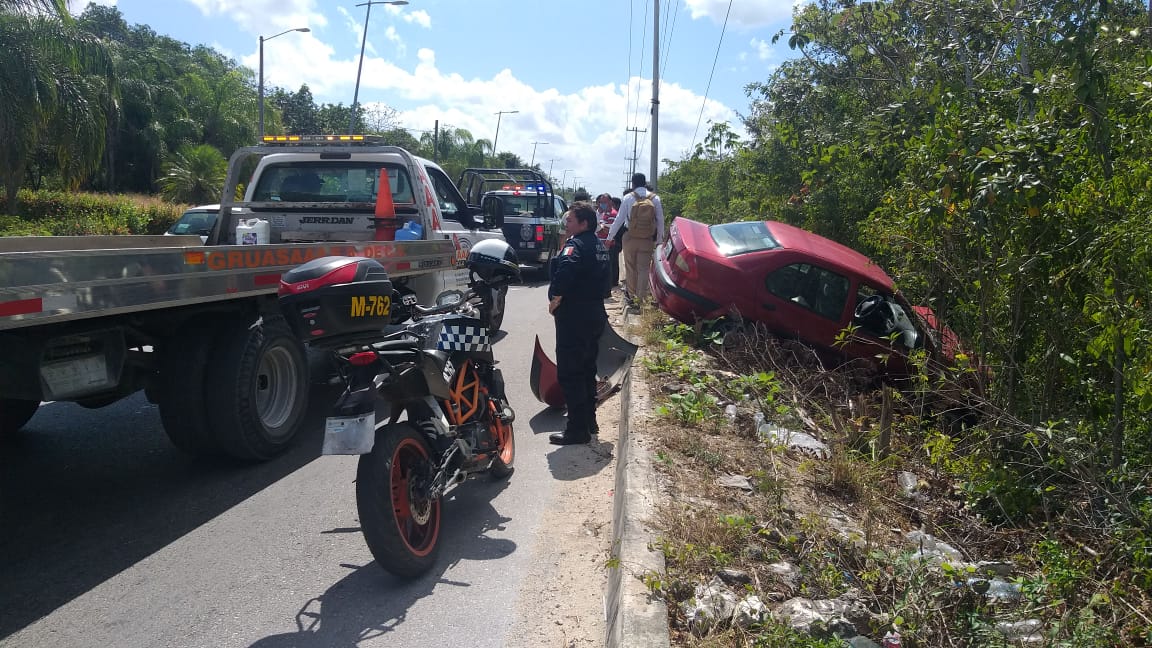 Cancún, Q. Roo, Viernes 20 de marzo de 2020, poderycrítica.- Tres personas resultaron lesionadas después de un accidente provocado entre el conductor de una motocicleta y un automovilista en la venida «Arco Vial» frente al Fraccionamiento «La Joya».