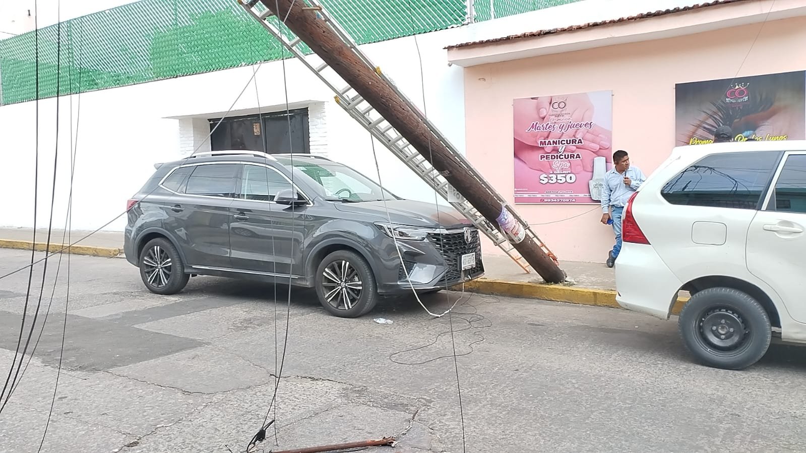 Personal de la aseguradora de la empresa telefónica acudió al lugar para negociar con la propietaria de un vehículo que resultó dañado debido al colapso del poste, buscando llegar a un acuerdo satisfactorio para ambas partes.