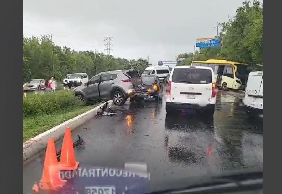 Todos los vehículos circulaban desde el Aeropuerto Internacional de Cancún hacia la Zona Hotelera. La primera van quedó montada sobre el carril central del bulevar, en tanto que otros vehículos, incluido un autobús de traslado de personal y un camión con mezcladora de cemento, viraron hacia un costado y quedaron parcialmente montados en la acera lateral.