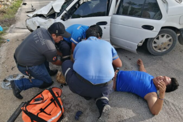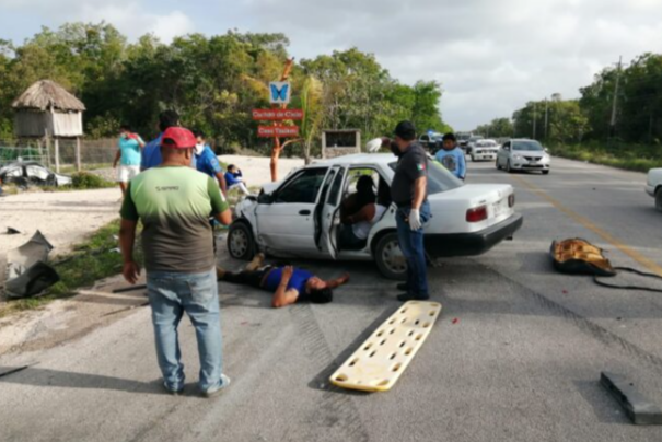 Accidente vehicular termina con ocho lesionados en tramo carretero Tulum-Cobá