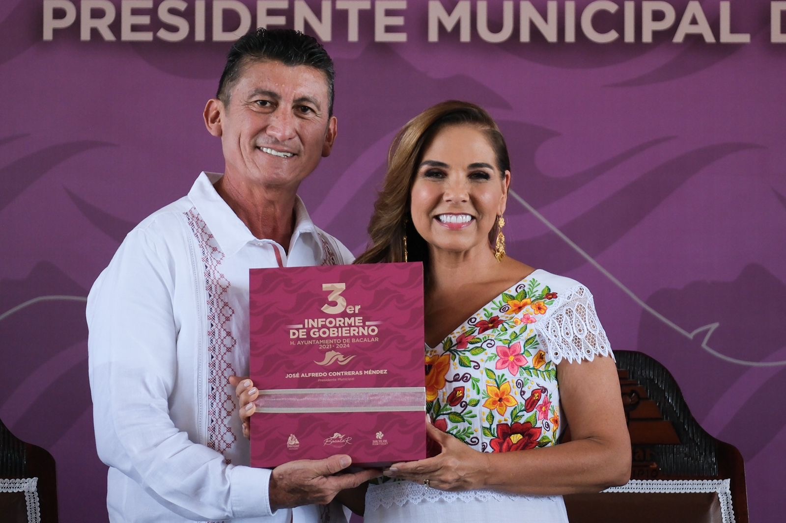 PODER Y CRÍTICA | REDACCIÓN | Junto con el pueblo bacalarense que se reunió en el domo deportivo de la colonia Luis Donaldo Colosio, la gobernadora Mara Lezama Espinosa atestiguó el Tercer Informe de Gobierno que rindió el presidente municipal de Bacalar José Alfredo Contreras Méndez.