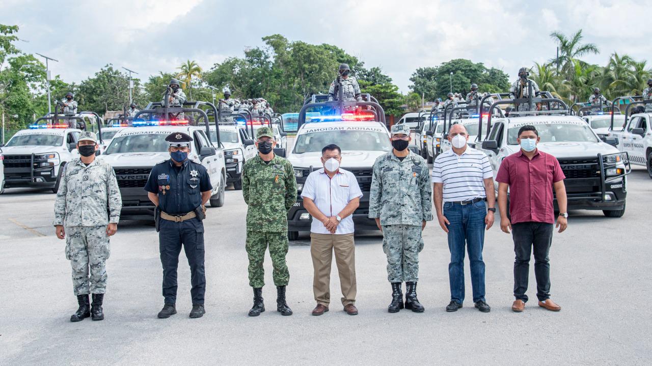 El alcalde Marciano Dzul Caamal #MDC y el Cmte. de la 34/a. Z.M, General Roberto Pérez Ceja, encabezaron el despliegue de dichos elementos que llegaron al municipio a sumarse a las actividades operativas territoriales.