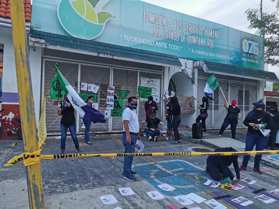 Ante esta situación y en reclamo a esta omisión, con el apoyo de integrantes del colectivo “Marea Verde” tomaron simbólicamente las instalaciones de la Comisión de Derechos Humanos de Quintana Rio.