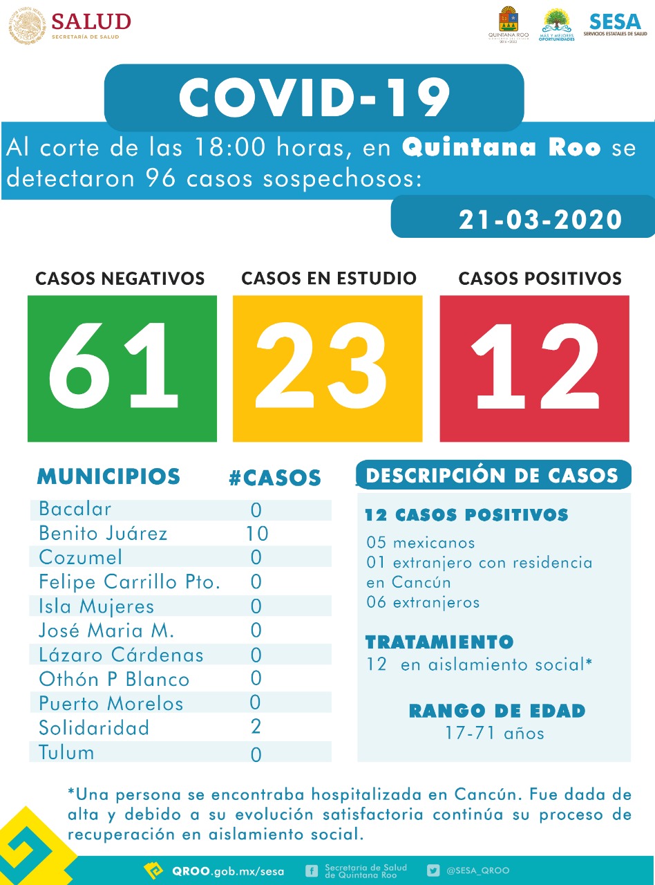 Tags: 12 casos positivos en Quintana RooCoronavirusSecretaría de SaludSESA