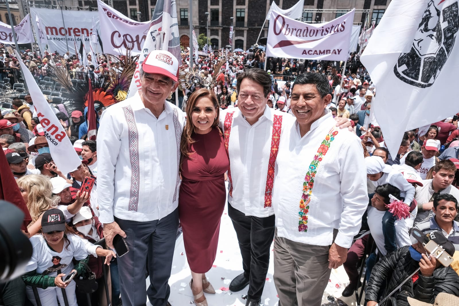 Mara Lezama estuvo en compañía del dirigente nacional, Mario Delgado Carrillo; el Secretario de Gobernación, Adán Augusto López; el Secretario de Relaciones Exteriores, Marcelo Ebrard; la gobernadora de la Ciudad de México, Claudia Sheinbaum, entre otros.