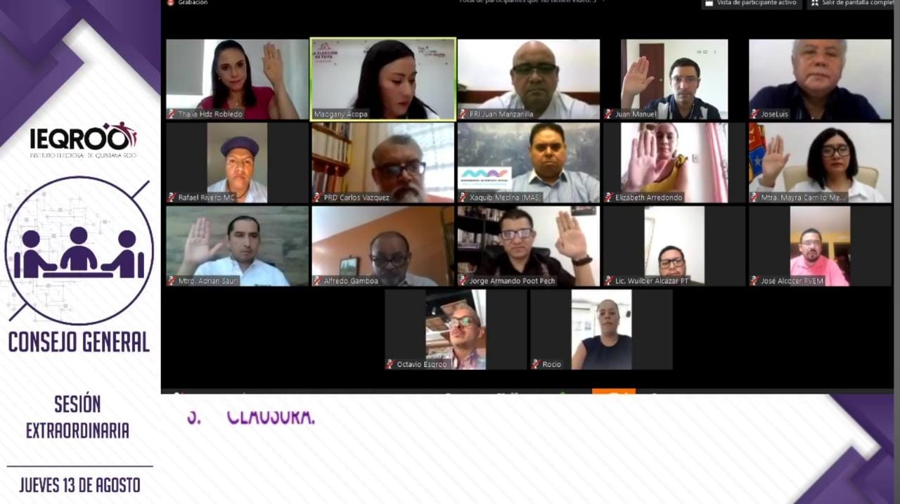 Chetumal, Q. Roo, Viernes 14 de Agosto de 2020, poderycrítica.– El Consejo General del Instituto Electoral de Quintana Roo (IEQROO) en Sesión Extraordinaria con carácter de urgente, aprobó el acuerdo por medio del cual se da respuesta a la solicitud realizada por el Instituto Nacional Electoral INE/CG192/2020, relativo al procedimiento que adoptará la autoridad administrativa electoral local en la verificación de los padrones de afiliadas y afiliados de los partidos políticos locales en el Estado.