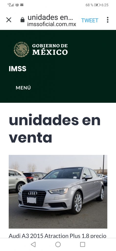 Ciudad de México, 23 de abril de 2020.- El Instituto Mexicano del Seguro Social (IMSS) denunció el uso indebido del logo símbolo y tipografía oficial del Instituto, así como la habilitación de una pestaña en la que se ofrece la venta de vehículos fraudulenta y anunció el inicio de acciones legales en contra de quien o quienes resulten responsables.
