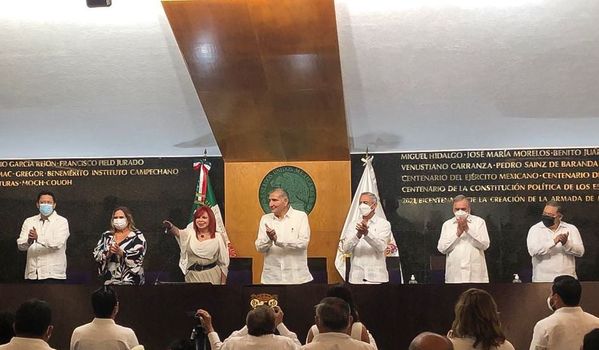 Ciudad de México, miércoles 15 de septiembre de 2021, poderycrítica.- En representación del presidente Andrés Manuel López Obrador, el secretario de Gobernación, Adán Augusto López Hernández, asistió a la toma de protesta de la gobernadora del estado de Campeche, para el periodo 2021-2027, Layda Sansores.