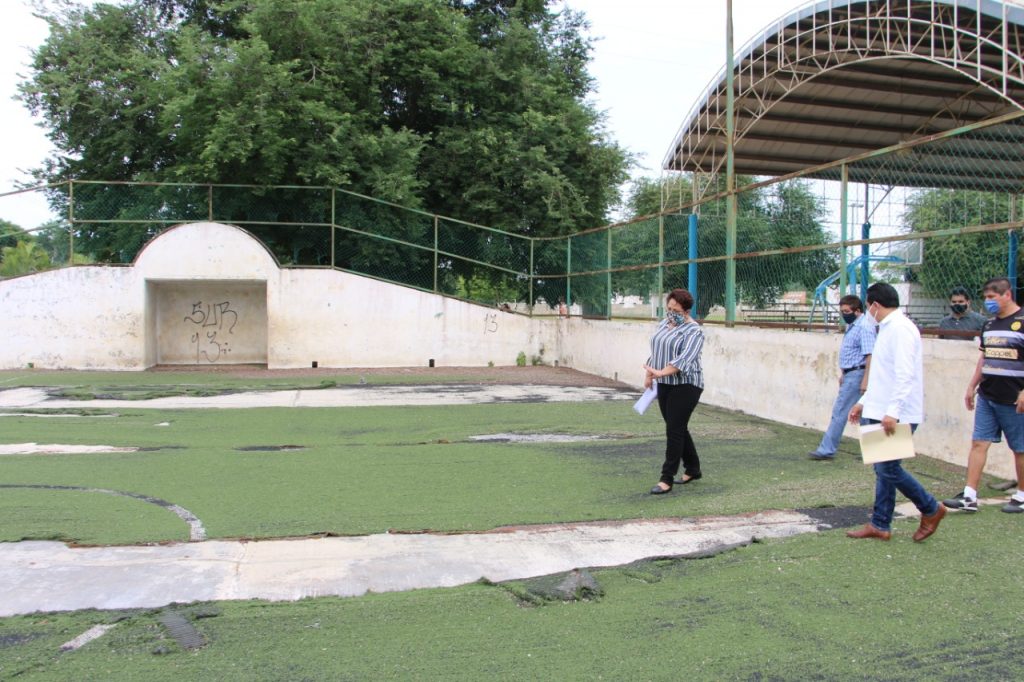 Acompañada del director de Obras Públicas, Baltasar Suárez Yah, del síndico municipal, Víctor Díaz Selem, y otros funcionarios, la alcaldesa evaluó la propuesta en la que se aplicará un proyecto para hacer de la unidad deportiva, un espacio incluyente e integral para la activación física.