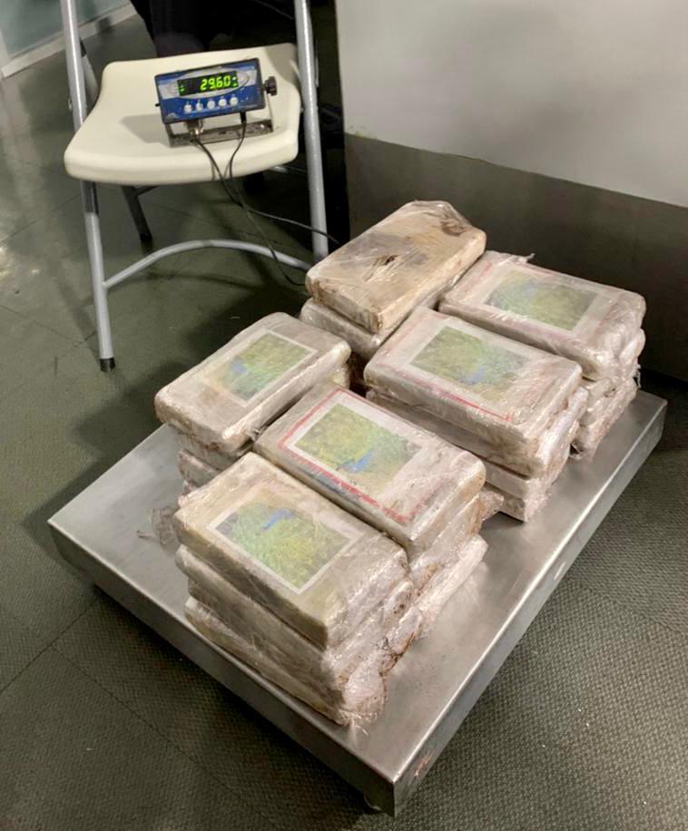 Según el reporte oficial, se trata de 25 paquetes envueltos en plástico con la droga procedente de Bogotá, Colombia. Los paquetes fueron detectados con con rayos X.
