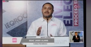 Chetumal, Q. Roo, Miércoles 19 de Mayo de 2021, poderycrítica.- El candidato a la presidencia municipal de Benito Juárez por el Partido Fuerza por México, Issac Jánix Alanís fue contundente al decir que va de frente con el combate a la corrupción y a la simulación administrativa, en su participación en el debate político organizado por el Instituto Electoral de Quintana Roo (IEQROO) la tarde de este miércoles.