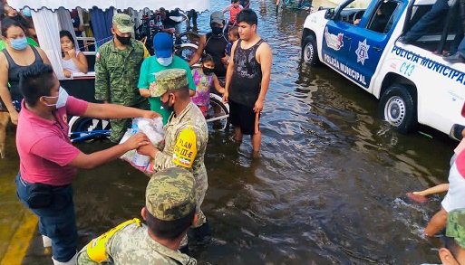 En tanto que en Macuspana, abundó, se intensificó el trabajo para garantizar una atención integral a las familias afectadas mediante entrega de ayuda humanitaria, atención médica por parte de la Secretaría de la Defensa Nacional (SEDENA) y la operación ininterrumpida de una cocina comunitaria.