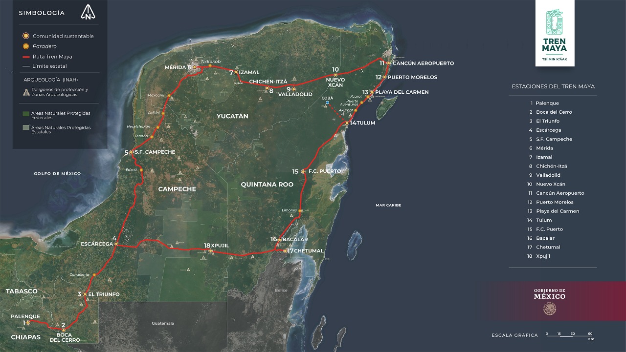 Chetumal, Q. Roo, Jueves 18 de Marzo de 2021, poderycrítica.- Autoridades de FONATUR han mencionado que esperan que el sistema del Tren Maya detone el sector agro alimentario con una mejor comercialización, ya que el 90% de este sector se moviliza en camiones. Se menciona que en el caso de Quintana Roo; Chetumal, Bacalar y Cancún serían los nodos de empuje de este proyecto.