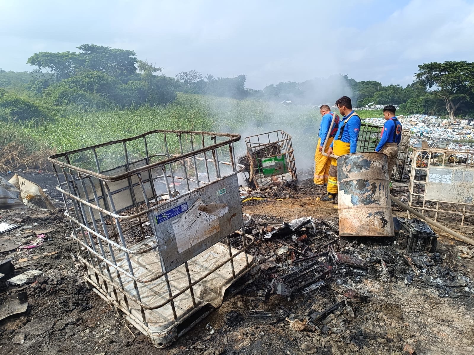 Las autoridades locales se desplazaron al sitio y procedieron a controlar la situación rociando agua sobre las fumarolas persistentes para mitigar el riesgo y asegurar que el incendio no se expandiera.