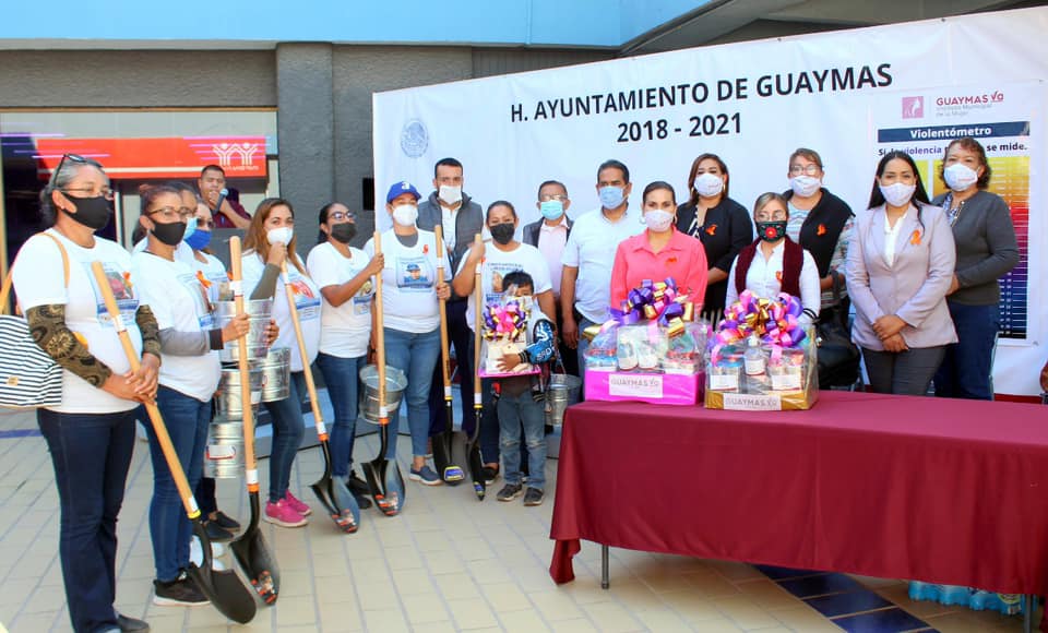 Guaymas, Sonora, Jueves 26 de Noviembre del 2020, poderycrítica.- Sara Valle Dessens, alcaldesa del municipio de Guaymas, entregó palas y cubetas de fierro al colectivio “Guerreras Buscadoras”, conformado por madres que buscan a sus hijos desaparecidos en fosas clandestinas.