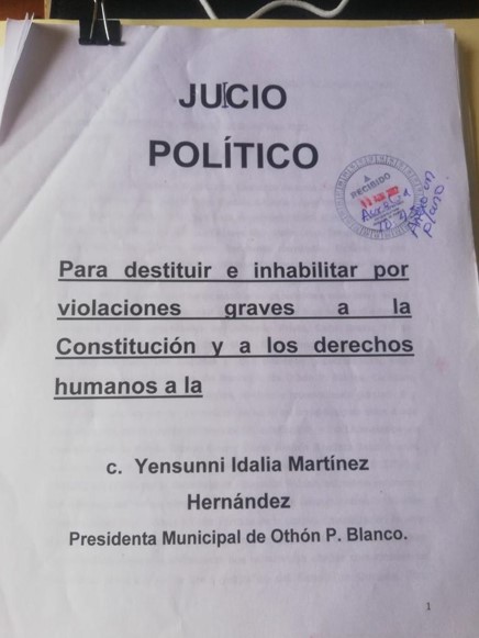 Es decir, a escasos meses de haber tomado protesta como presidenta municipal del Ayuntamiento de Othón P. Blanco, así como otros documentos importantes.
