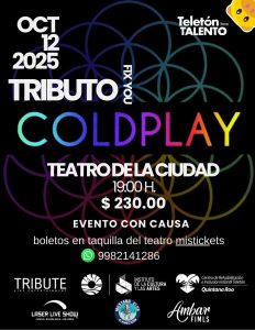PODER Y CRÍTICA | La magia musical de Coldplay llegará a Cancún con un propósito solidario. El próximo domingo 12 de octubre, el Teatro de la Ciudad será escenario del espectáculo “Coldplay Tribute Night – Canta. Siente. Ayuda”, un evento con causa a favor del Centro de Rehabilitación Infantil Teletón (CRIT) Cancún.