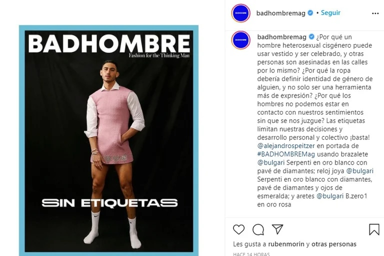 “La ropa no tiene género y eso le cuesta a la generación de cemento que se empeña en querernos hacer vivir entre machismo y homofobia tal y como a ellos les pasó”. “No se trata del año, sino de la generación que somos y si prefieren ver a una mujer desaparecida que un hombre con un mini top en Instagram, me da gusto ser de ‘cristal’”. “Alex no es la primera vez que posa con algo que es “para mujeres”, lo que les molesta es que aún usando eso que consideran para niñas jamás ustedes podrían salir con mujeres de la talla de Ester Expósito o la ex novia de Marc Anthony”, escribieron fans.