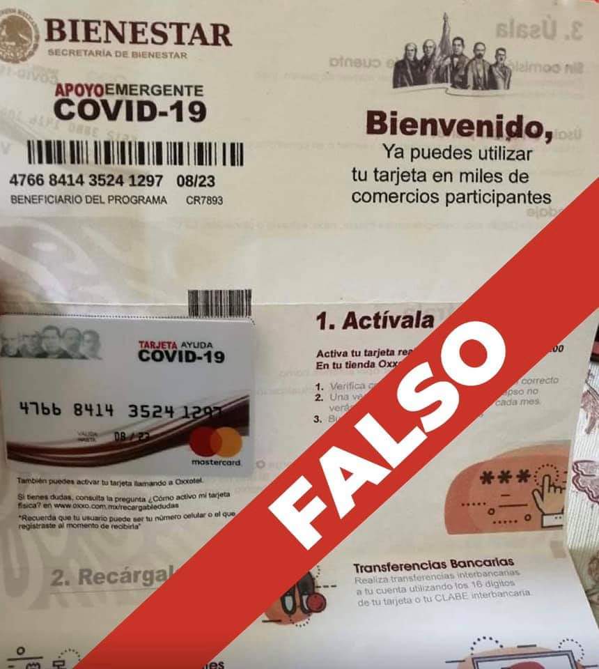 A nivel nacional, la Secretaría de Bienestar informó que presentó ante la Fiscalía General de la República una denuncia por la probable comisión de hechos, presumiblemente constitutivos de delitos, en contra de quien y/o quienes resulten responsables de la distribución de tarjetas falsas como parte de un supuesto programa del Gobierno de México para apoyar a la población ante la emergencia sanitaria por Covid-19.
