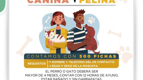 La directora de Protección y Bienestar Animal, Georgina Vázquez Bracho Hidalgo, señaló la importancia del cuidado integral de perros y gatos, por lo que los dueños interesados deberán acudir a la escuela primaria “Independencia”, ubicada en la colonia Avante, de las 08:00 a las 12:00 horas, este jueves 26 y viernes 27 de enero, y obtener una de las fichas para la cirugíaSe entregarán 500 espacios para la esterilización, una por familia, por lo que se deberán presentar con los siguientes requisitos: nombre y teléfono del contacto, edad y sexo de la mascota en cuestión.