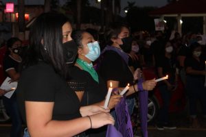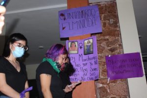 Frente al palacio municipal, las voces se alzaron, una por una utilizando un micrófono y una pequeña bocina, señalando la falta de existencia de una instancia que brinde un trato digno a las mujeres, que no hay sanciones ejemplares a los feminicidas y que las cifras no han disminuido.