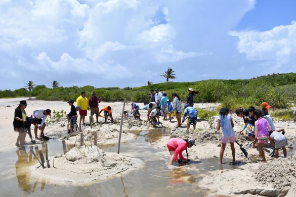PODER Y CRÍTICA | REDACCIÓN | Como parte del modelo de aprendizaje experiencial y para conmemorar el Día Internacional de Conservación del Ecosistema de Manglares, el director general de la Fundación de Parques y Museos de Cozumel (FPMC), José Luis Chacón Méndez, entregó propágulos de manglar a niñas y niños que hicieron trabajos de restauración en el área natural de Laguna Colombia, para que los infantes adquieran conocimientos significativos en el cuidado y conservación del medio ambiente.