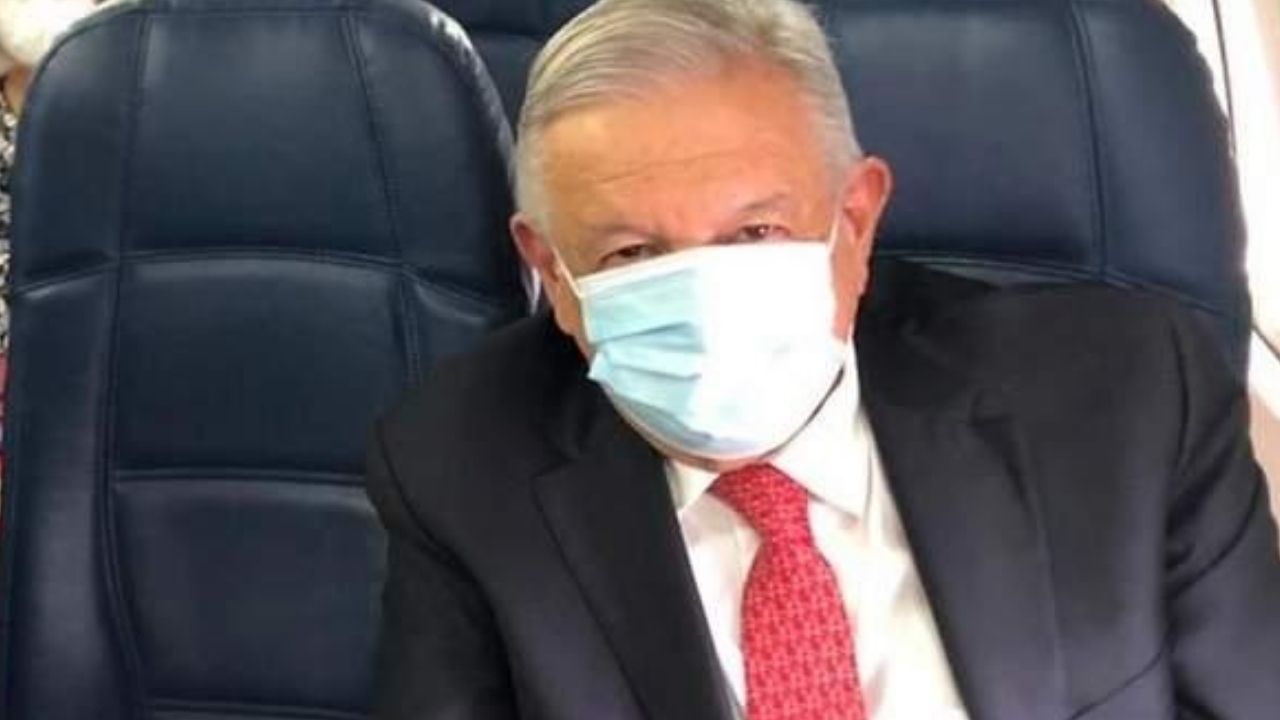 Portando el cubrebocas como exigen las autoridades aeronáuticas del país, el Presidente Andrés Manuel López Obrador difundió una fotografía dentro del avión comercial que lo llevó a Villahermosa, Tabasco, desde donde observó el Pico de Orizaba.