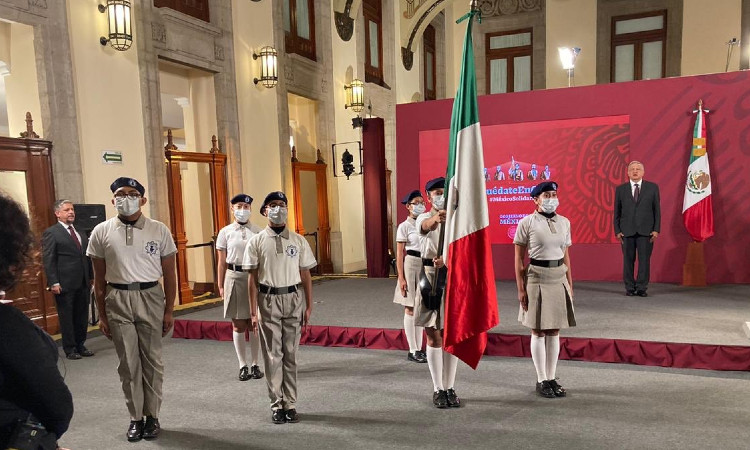 Durante la conferencia se llevaron a cabo los honores a la bandera nacional, con una escolta de estudiantes de Secundaria y se entonó el Himno Nacional.