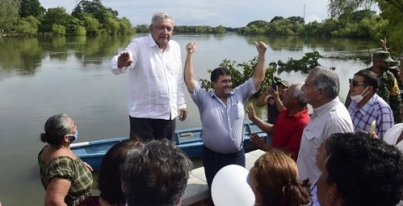 A la altura del parque central, López Obrador se subió al bordo del malecón, y desde ahí, dirigió sus palabras en medio de una multitud, como si fuese un mensaje a los tabasqueños de todos los municipios afectados por las inundaciones.