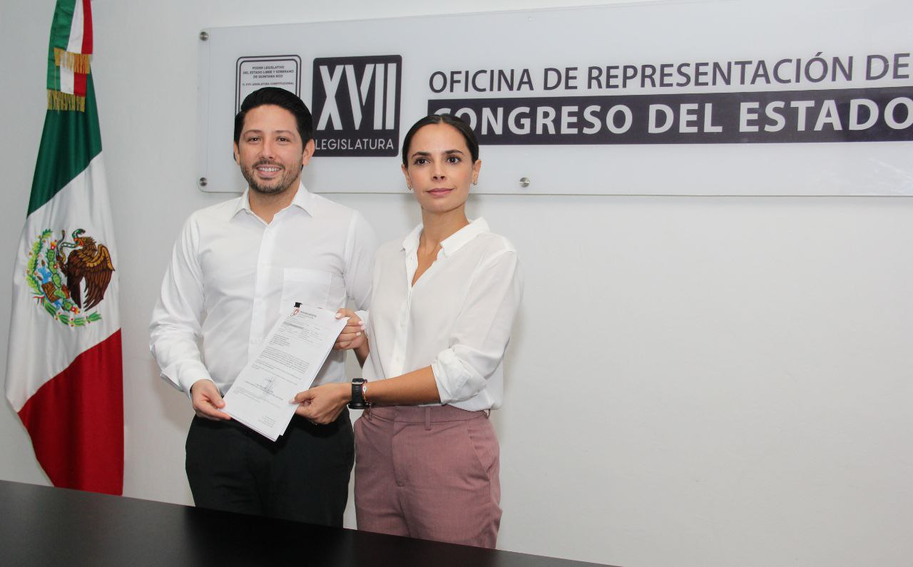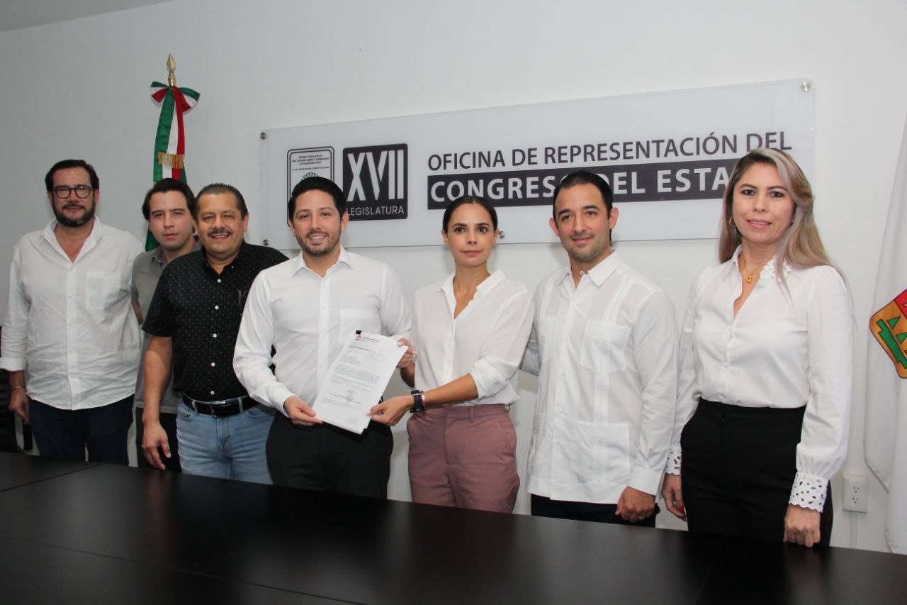 En la oficina de representación del Congreso del Estado en Cancún, el diputado presidente de la Junta de Gobierno y Coordinación Política Presidente (JUGOCOPO) de la actual legislatura, Renán Sánchez Tajonar, recibió de las manos de la Primera Autoridad Municipal el expediente correspondiente para conocimiento, estudio y análisis de esa instancia.
