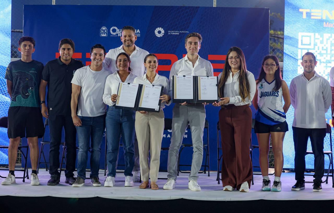 Luego de las palabras del presídium, Ana Paty Peralta, junto a al Founder partner & CEO de T3n Sport & Investment, Kiyomi Cerezo y a las regidoras de la Comisión de Turismo, Ecología y Medio Ambiente, Ivette Lorena Manjarrez Cardona; y de la Comisión de Educación, Cultura y Deporte, Silvana Guadalupe Córdova Uicab, signaron el convenio que beneficiará a 24 cancunenses.