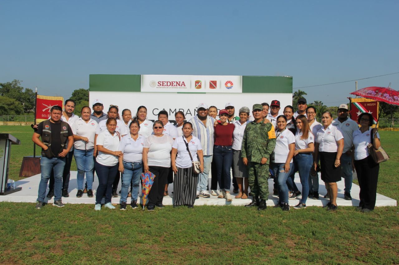 Luego de participar todos en la ordenanza al Lábaro Patrio, acompañada por el Coronel del 64° Batallón de Infantería, general Samuel Javier Carreño; el presidente del comisariado ejidal, Reyes Antonio de la Rosa Muñoz y el delegado de Bonfil, José González Vázquez, la Presidenta Municipal participó en la reforestación de las áreas verdes, a la que se sumaron también jóvenes del Colegio de Bachilleres Plantel 3, alumnos de la secundaria “Rosario Castellanos” y personal de varias dependencias.