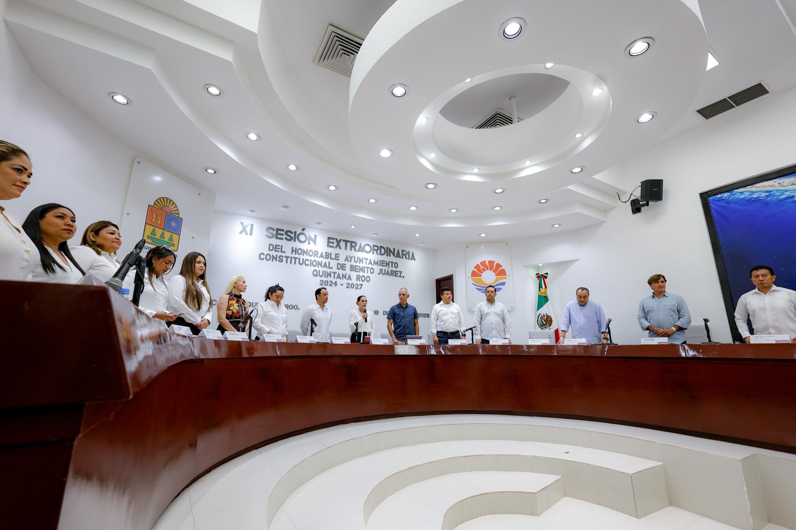 En el marco de la sesión realizada en el recinto oficial “20 de abril”, la Primera Autoridad Municipal dijo a las y los cancunenses que por la seguridad y la paz, se seguirán tomando decisiones firmes y responsables, fortaleciendo la policía, combatiendo la corrupción y haciendo de Cancún un lugar seguro.