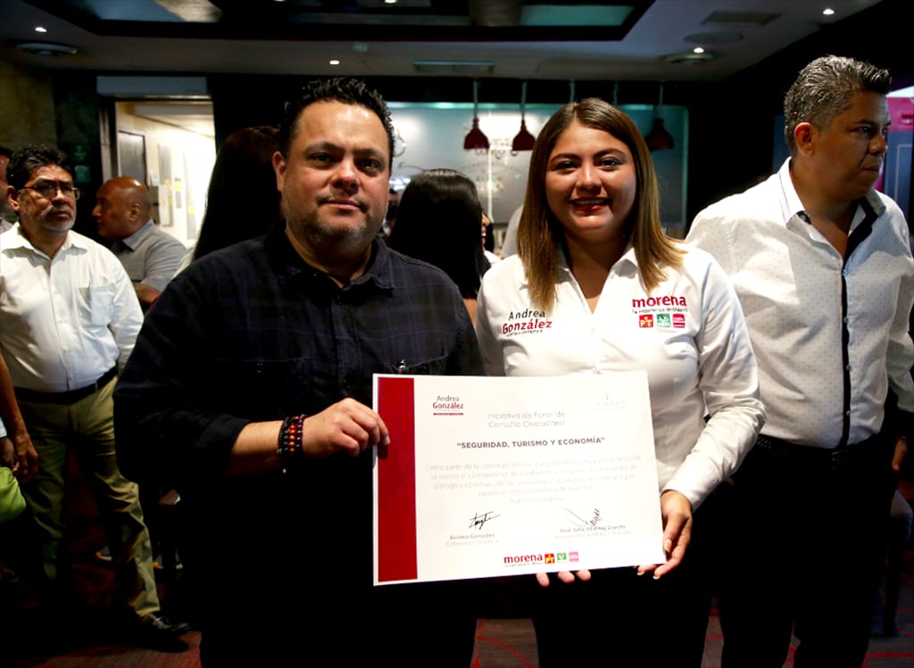 PODER Y CRÍTICA | REDACCIÓN | En reunión con integrantes de la Cámara Nacional de la Industria de Restaurantes y Alimentos Condimentados (Canirac), Andrea González, candidata a la diputación por el Distrito 6 por la coalición “Juntos Hacemos Historia en Quintana Roo”, propuso organizar el foro “Seguridad, Turismo y Economía” para que las cámaras empresariales sean partícipes de la agenda legislativa.