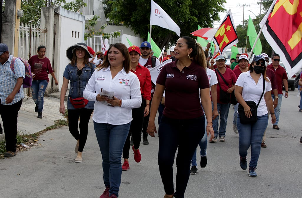 «Venimos a apoyar a nuestra candidata a diputada Andrea y a nuestra candidata a gobernadora Mara Lezama, para ganar las elecciones el 5 de junio», dijo Marybel Villegas, coordinadora general de la campaña a la gubernatura.