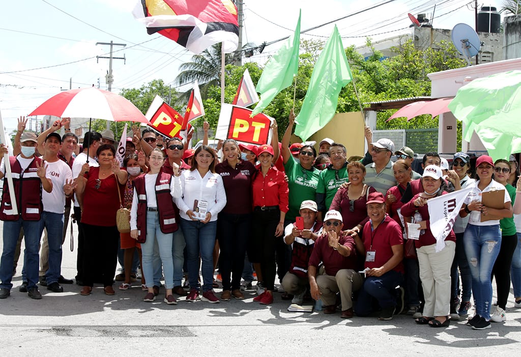 PODER Y CRÍTICA | REDACCIÓN | La candidata a la diputación del 6 Distrito por la coalición “Juntos hacemos historia en Quintana Roo”, Andrea González, recorrió las calles de la Región 102 acompañada de Marybel Villegas Canché.