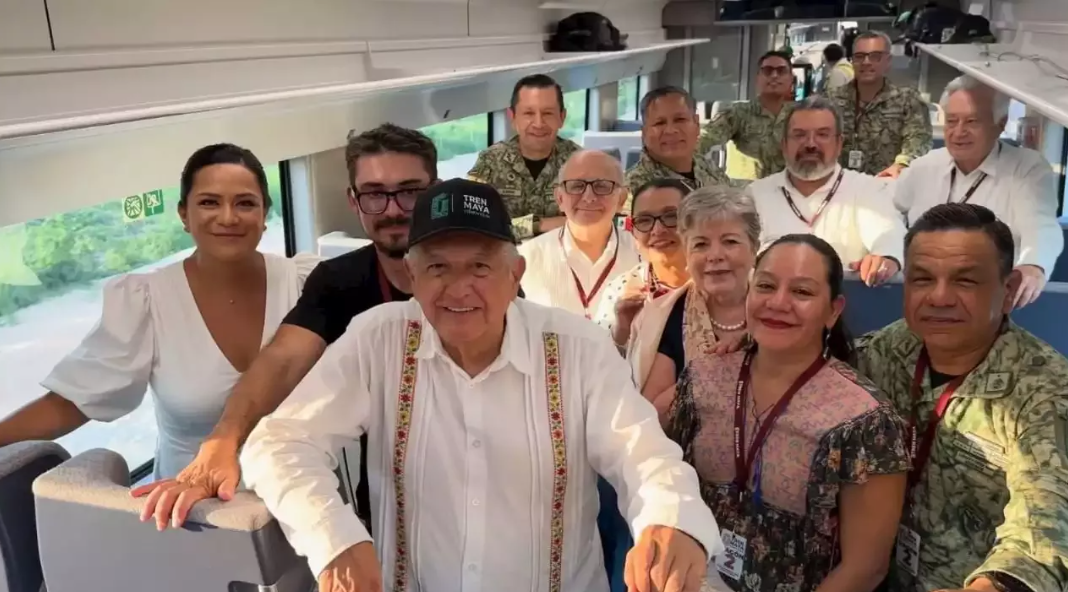 “Y llegó el gran día. Nos vamos a subir al Tren Maya, el tren de la justicia social, que llevará a través de las vías de la transformación la prosperidad compartida. Es una realidad. Hoy iniciamos y es el primer recorrido en este histórico tren”, expresó en un video en el que mostró algunas imágenes de los vagones.