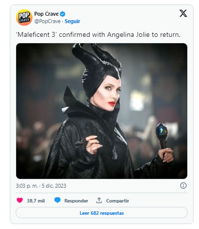 De la misma manera, Jolie confirmó que ha estado trabajando en la tercera entrega de las películas que tienen como protagonista a “Maléfica”, anunciando que es de las últimas producciones que hará antes de retirarse como actriz.