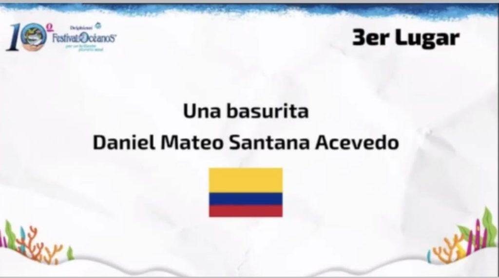 3er lugar: «Una Basurita» – Daniel Mateo Santana Acevedo. Estudiante de Cine en el Instituto Tecnológico Metropolitano de Medellín. Medellín, Colombia.