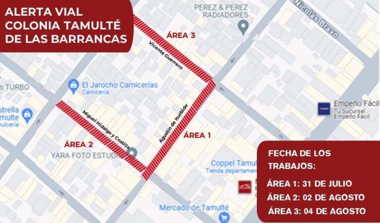 PODER Y CRÍTICA | REDACCIÓN | El Ayuntamiento de Centro ha anunciado el cierre temporal de tres calles en la colonia Tamulté de las Barrancas debido a trabajos de reconstrucción de pavimento de concreto asfáltico. Estas obras se llevarán a cabo desde este miércoles 31 de julio y están programadas para finalizar el 10 de agosto. El propósito de las obras es mejorar la infraestructura vial en la zona, y se han dado a conocer los detalles sobre el cronograma de trabajos.