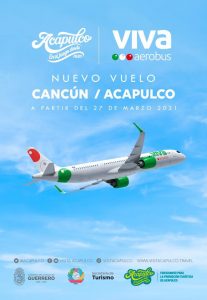 Cancún, Q. Roo, Jueves 25 de Febrero de 2021, poderycrítica.- Con un servicio apegado a rigurosas medidas de prevención e higiene, Vivaaerobus lanza la ruta Cancún – Acapulco, la primera que se anuncia este año en aras de una reactivación responsable y segura del sector aéreo y turístico de México.