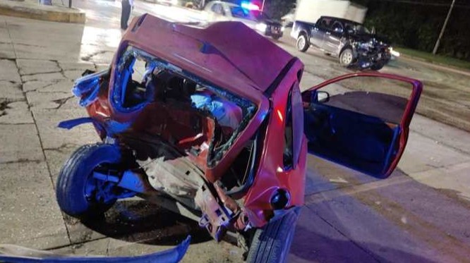 El trágico choque ocurrió a las 5:30 de la mañana, cuando un automóvil Chevy, color rojo, esperaba el “verde” del semáforo, pero fue colisionado en la parte trasera por una camioneta pick up, cuyo conductor circulaba a exceso de velocidad, al parecer en estado de ebriedad.